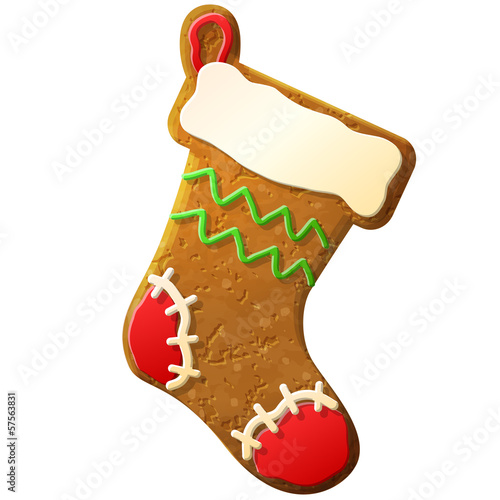 Gingerbread christmas stocking decorated colored icing