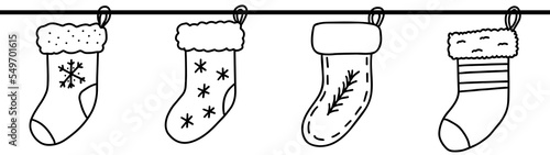Christmas socks isolated line drawing, vector illustration design. Christmas collection.