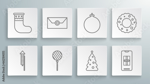 Christmas stocking line icon, outline vector sign, linear pictogram isolated on white. logo illustration