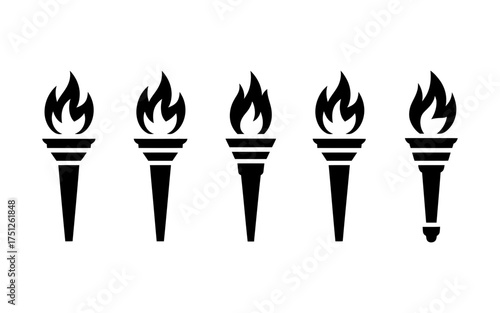 Collection of stylized torch icons with flames