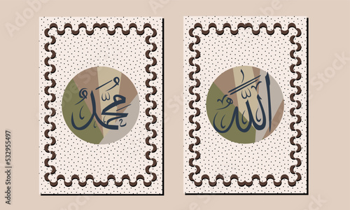 GoldAllah muhammad Name of Allah muhammad, Allah muhammad Arabic islamic calligraphy art, with traditional frame and retro color. Islamic calligraphy name of Allah Muhammad