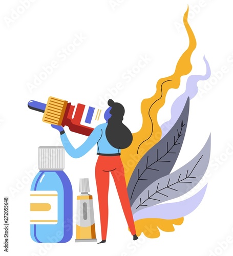 asian woman applying antibacterial spray disinfection against virus bacteria stop coronavirus pandemic quarantine concept horizontal portrait vector illustration