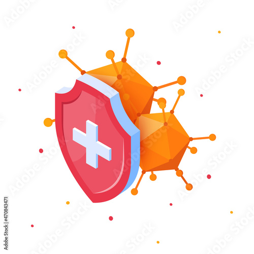 Virus and shield, antibacterial protection, antiviral drug logo design. Antibacterial protection icon, shield and virus  vector design and illustration.