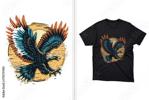 hand drawn flying eagle t shirt design artwork