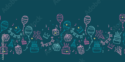 Vector birthday horizontal seamless pattern ornament background