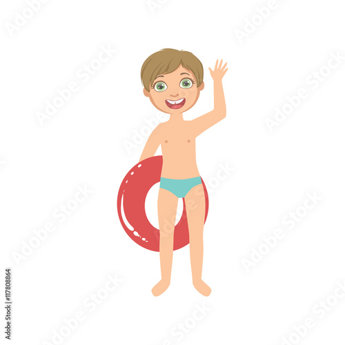 Happy young teenager boys posing in blue underwear. Vector kids illustrations set. Childhood and family lifestyle clip art.