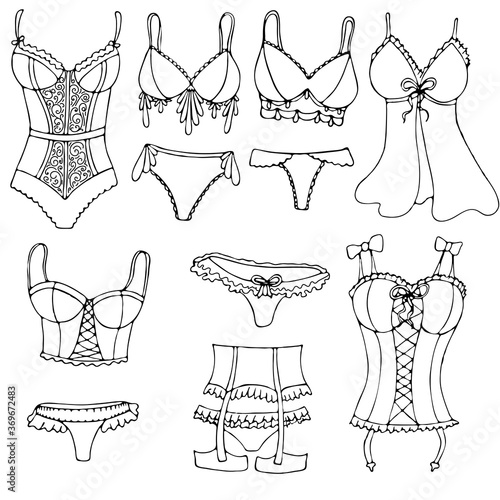 Doodle set of undergarment outfits vector illustration scalable eps icon collection
