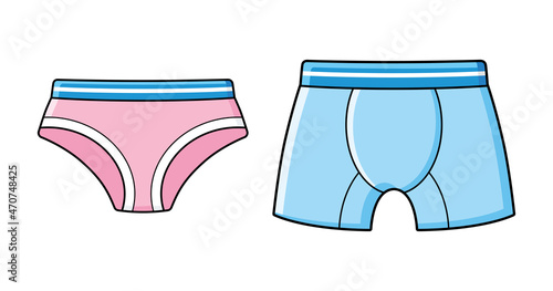 Pink sports woman lingerie panties underwear and blue mens boxer shorts briefs underpants isolated cartoon vector