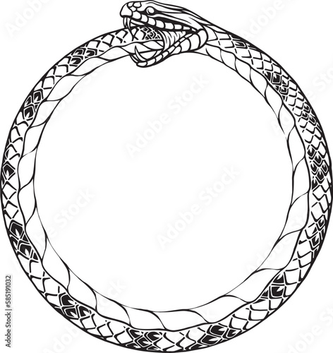 Stylized Ouroboros. Antient symbol of snake biting it's tail. Line art, sketch style