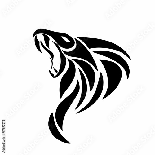 Stylized geometric serpent head illustration. Vector icon tribal cobra design.