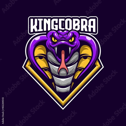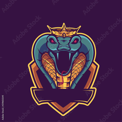 A fierce cobra esports logo featuring an aggressive snake design with vibrant colors on a dark background, showcasing competitive spirit and strength