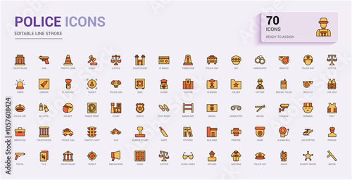 Collection of law and justice line icons. 48x48 Pixel Perfect. Editable stroke