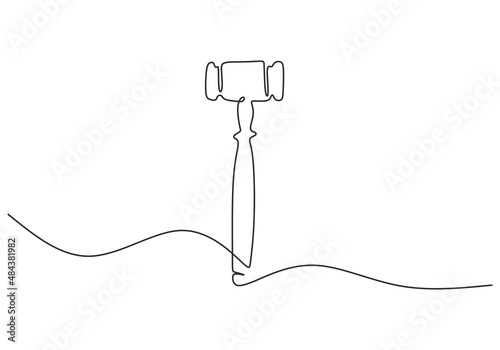 One continuous single line of judge hammer for justice isolated on white background.