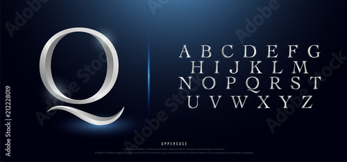Set of Elegant Silver Colored Metal Chrome Uppercase Alphabet Font. Typography classic style silver font set for logo, Poster, Invitation. vector illustration