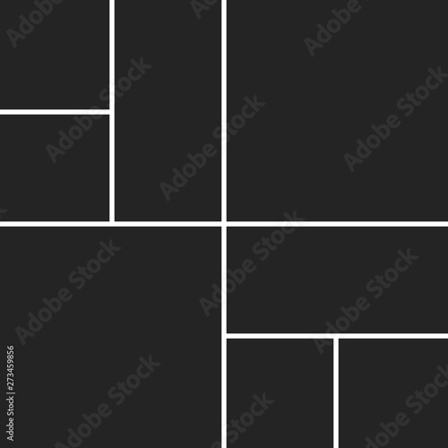 Creative vector Template Collage consisting of 9 frames for a photo of a square and rectangular shape.