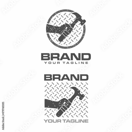 Hand holding hammer logo design vector