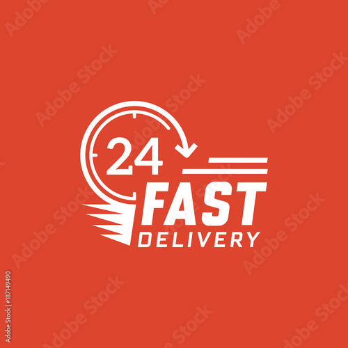 Fast delivery 24 hour on red background. Delivery label for online shopping. Worldwide shipping. Vector illustration