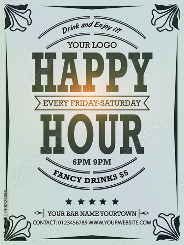 Happy Hour Vector Illustration Background for Poster, Banner, Flyer, Sign Board, Advertisement, Promotion, Web.