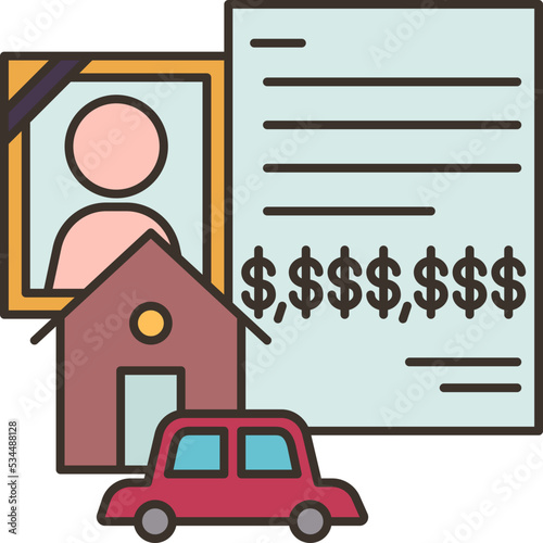 Inheritance icon set. Heritage and wealth. Family tree, will, door key, joined hands, house with coins. Solid icons. Vector illustration