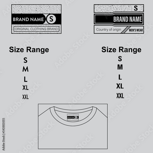 Back neck label print (BNP) for garments. T-Shirt brand label design. Adding with size range & care symbol you can use for your required. Brand identity design