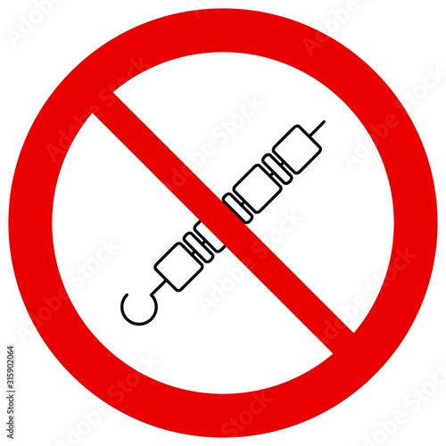 Forbidden sign with red fish meat icon, no fillet fish meat allowed sign, fish fillet prohibition symbol, do not eat fish meat symbol