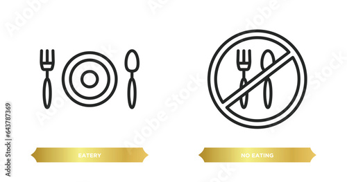 two editable outline icons from food concept. thin line icons such as eatery, no eating vector.