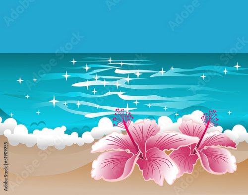Paradise background with hibiscus and sweet ocean