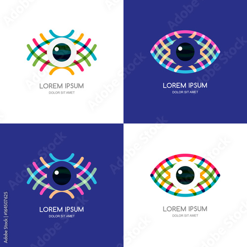 Set of vector colorful abstract eye logo, sign, emblem design element. Design concept for optical, glasses shop, oculist, ophthalmology, CCTV