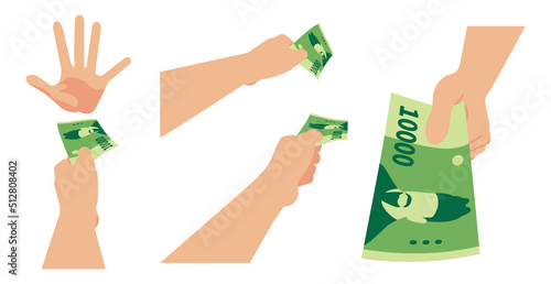 Showing her palm with refusing. Refusing money. Anti corruption scene with illegal bribe money transfer. Flat vector illustration