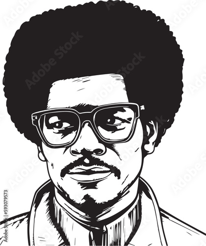 Vintage man in glasses 60s style young man . Retro comics black and white ink drawing, American cartoon advertising illustration, vector, SVG