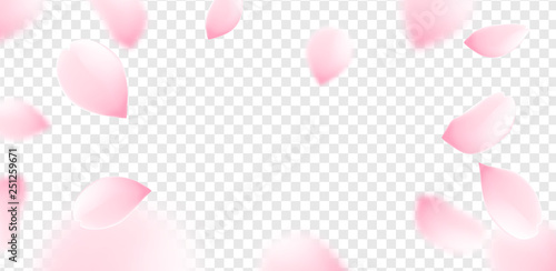 Spring Flowers Blooming. Realistic Flying Petals For Banner Design. Great Design For Any Purposes. Pink on Transparent.