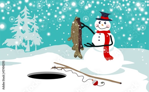funny ice fishing snowman