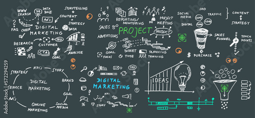 Conceptual vector storyboard icon of hand drawing creative sketches | modern flat design marketing and business linear illustration and infographic concept on blue background