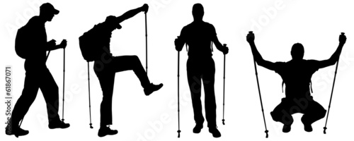 set of hiker people silhouette.