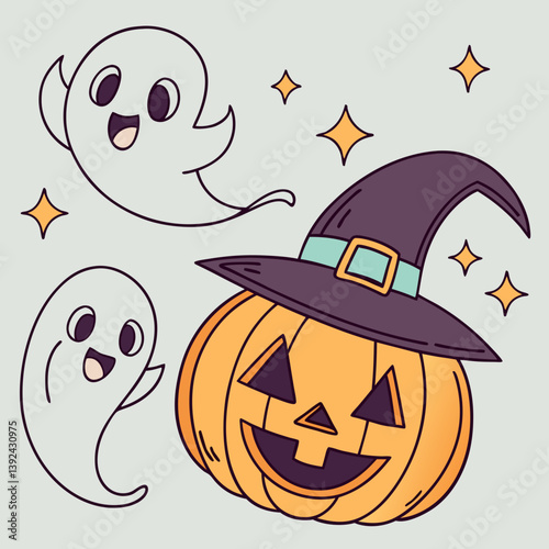Many of  Halloween pumpkins lanterns color variation for coloring page isolated on white