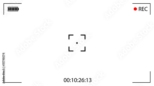 Classic digital video camera focusing screen. White viewfinder camera recording. Vector illustration