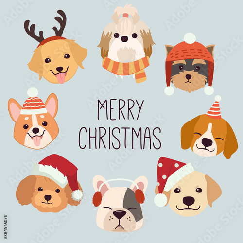 The collection of cute dog sitting in the mup cup withh christmas party theme. Graphic resource for graphic,content , banner, sticker label and greeting card.