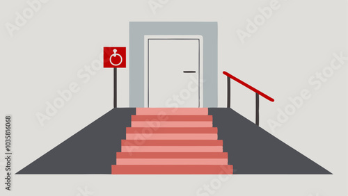 Accessibility Ramp Leading to Building Entrance with Wheelchair Wheel Against Wall Illustration