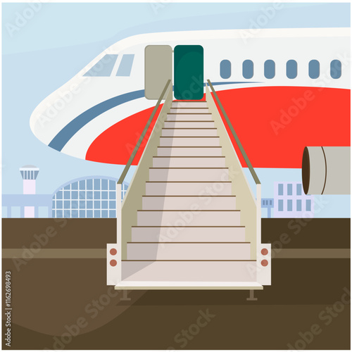 White Plane with Open Door and Staircase on Runway