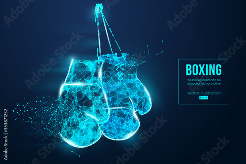 Abstract silhouette of a wireframe boxer gloves on the blue background. Boxing sports equipment. Boxer is winner. Convenient organization of eps file. Vector illustration. Thanks for watching