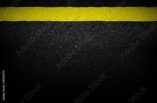 Yellow double line on tarmac road top view. Highway traffic mark vector illustration. Background with old paint texture on asphalt surface. Roadway seamless pattern. Straight urban driveway