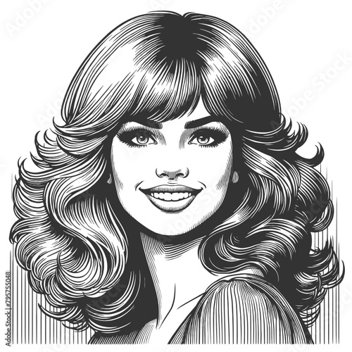 woman laughing heartily, her head thrown back in a moment of pure joy and infectious mirth sketch engraving generative ai fictional character vector illustration. Black and white image.