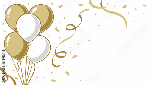 Joyful Celebration, Balloons, Confetti, Cheerful Woman, Happiness Vector Illustration