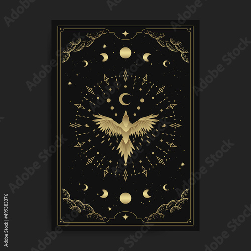 artwork illustration and t-shirt design phoenix engraved ornament premium vector