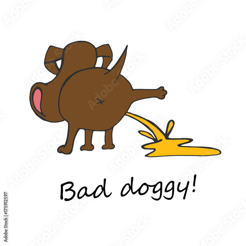 Doodle drawing pissing dog. A cute puppy urinates under a flower.