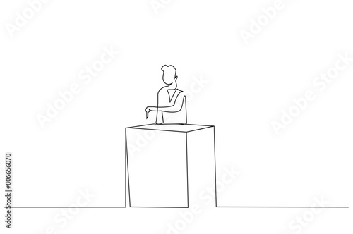 Thin line reserve button with black mouth hand. Flat outline trend modern logotype design isolated on white background.