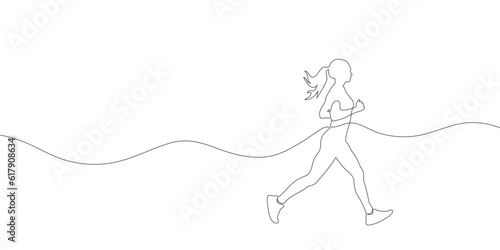 Woman running drawn in a continuous one line drawing. . Vector illustration