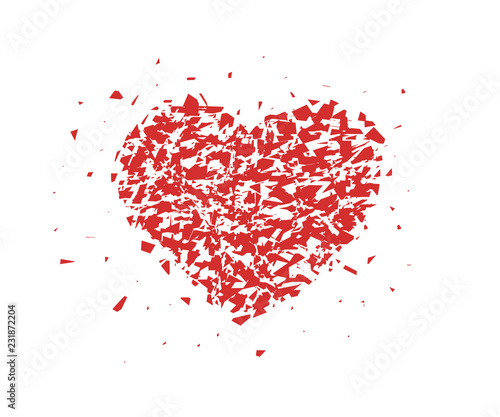 Broken heart, small pieces, particles. Abstract Vector illustration isolated on light background.