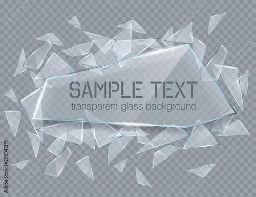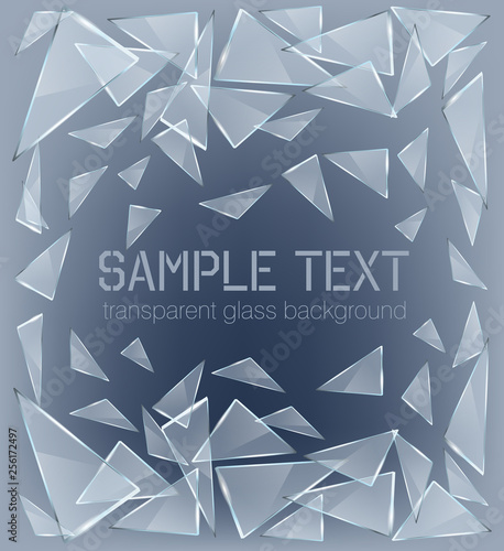 Shards of broken glass. Abstract explosion. Realistic vector background