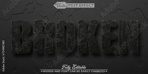 Broken Vector Text Effect Editable Alphabet Crack Crash Break